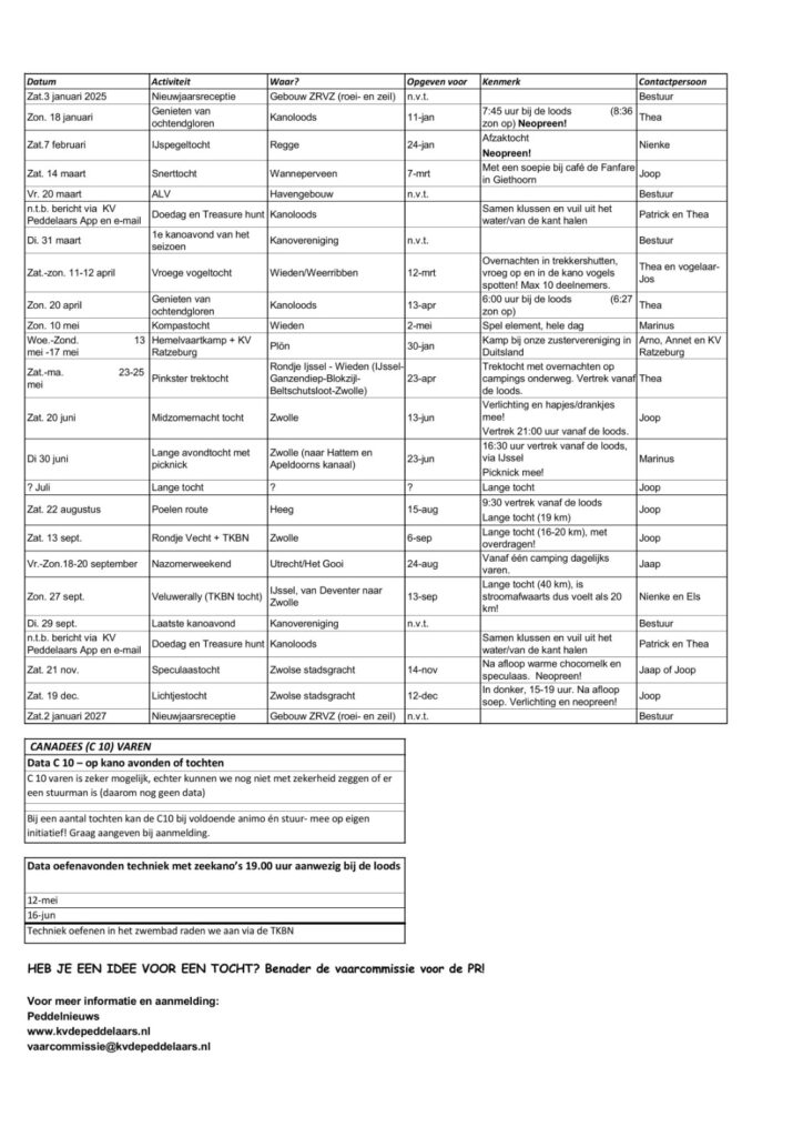 Zie onderaan deze pagina of download hier: vaarprogramma 2026 en de vaarafspraken van Vaarcommissie KV de Peddelaars
